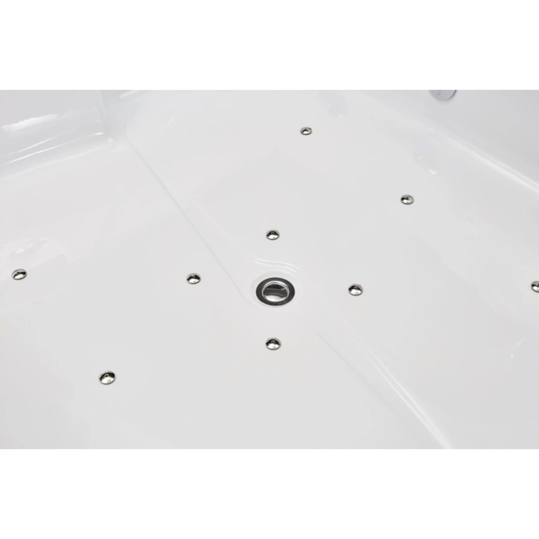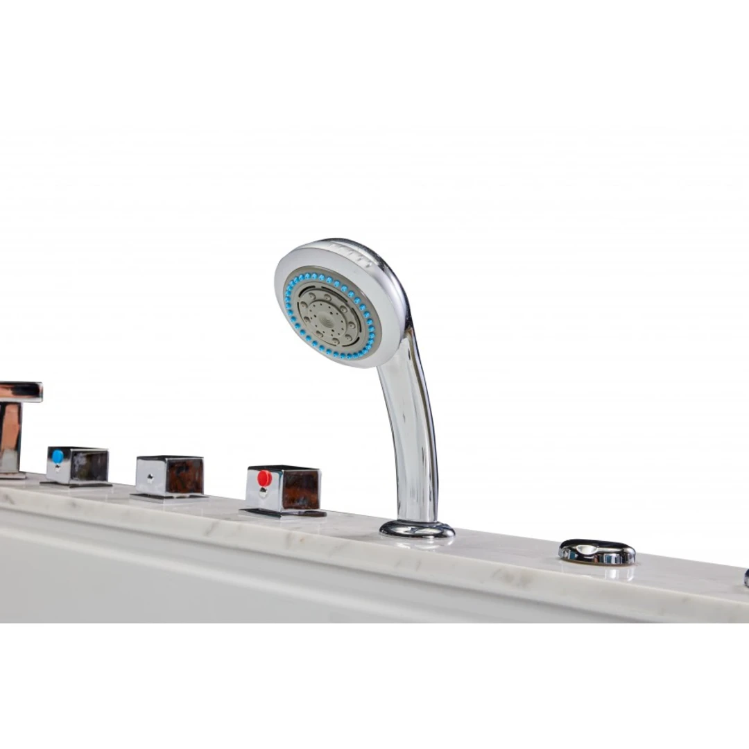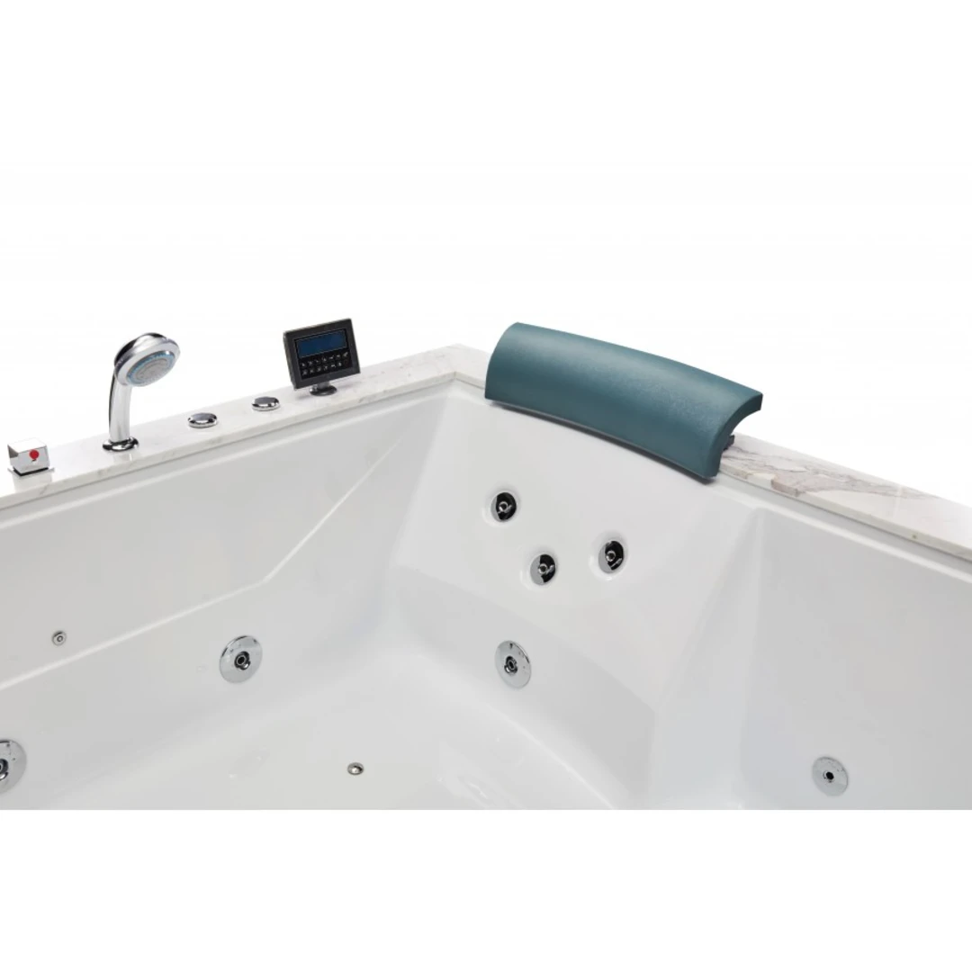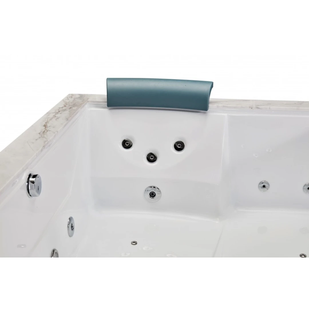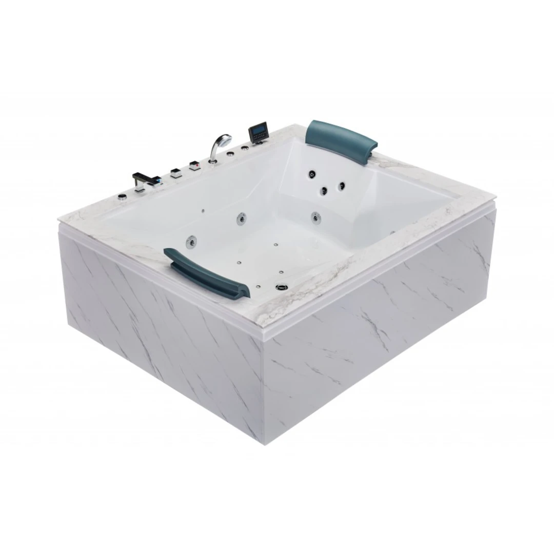 Modelul SPA-0502 este o cadă cu hidromasaj pentru două persoane, concepută pentru sesiuni intense de relaxare prin combinarea jeturilor de apă, jeturilor de aer și cromoterapiei. Structura include panouri decorative din compozit cu folie de aluminiu „Jazz White” pe trei laturi și perimetru decorativ din piatră naturală „White Marble”, oferind un design modern și elegant, potrivit pentru băi premium.