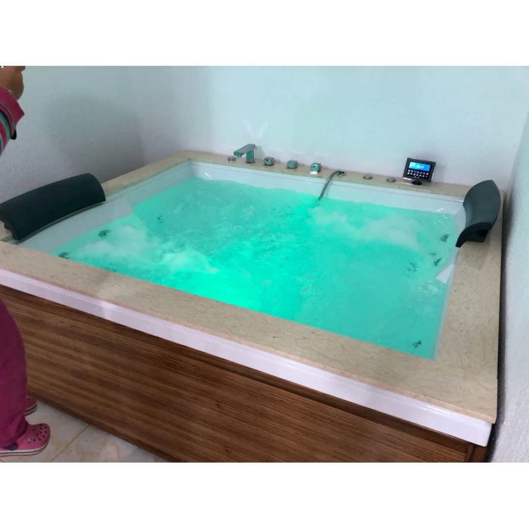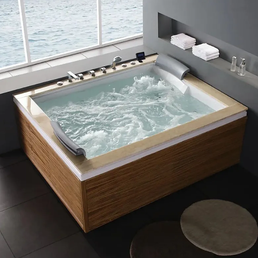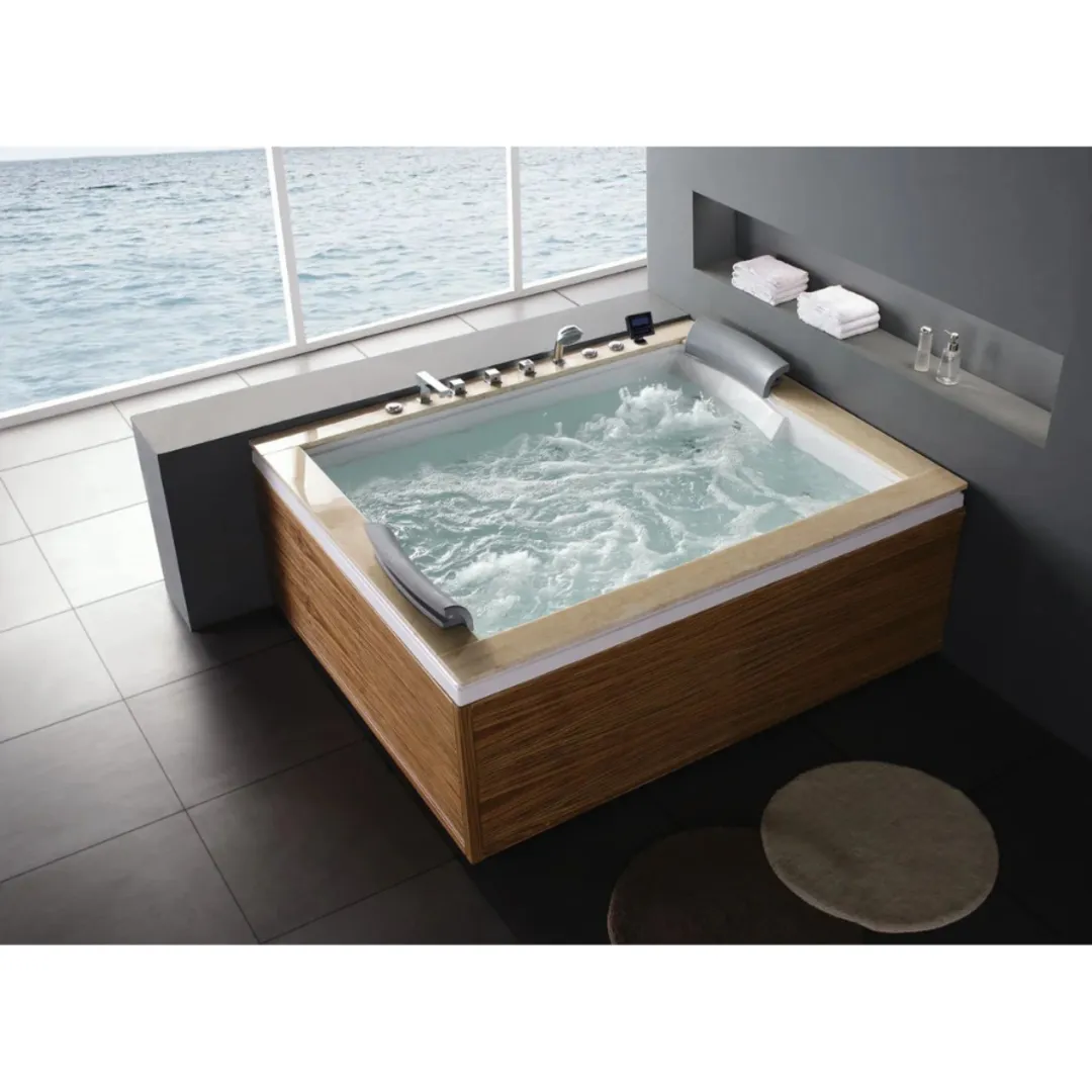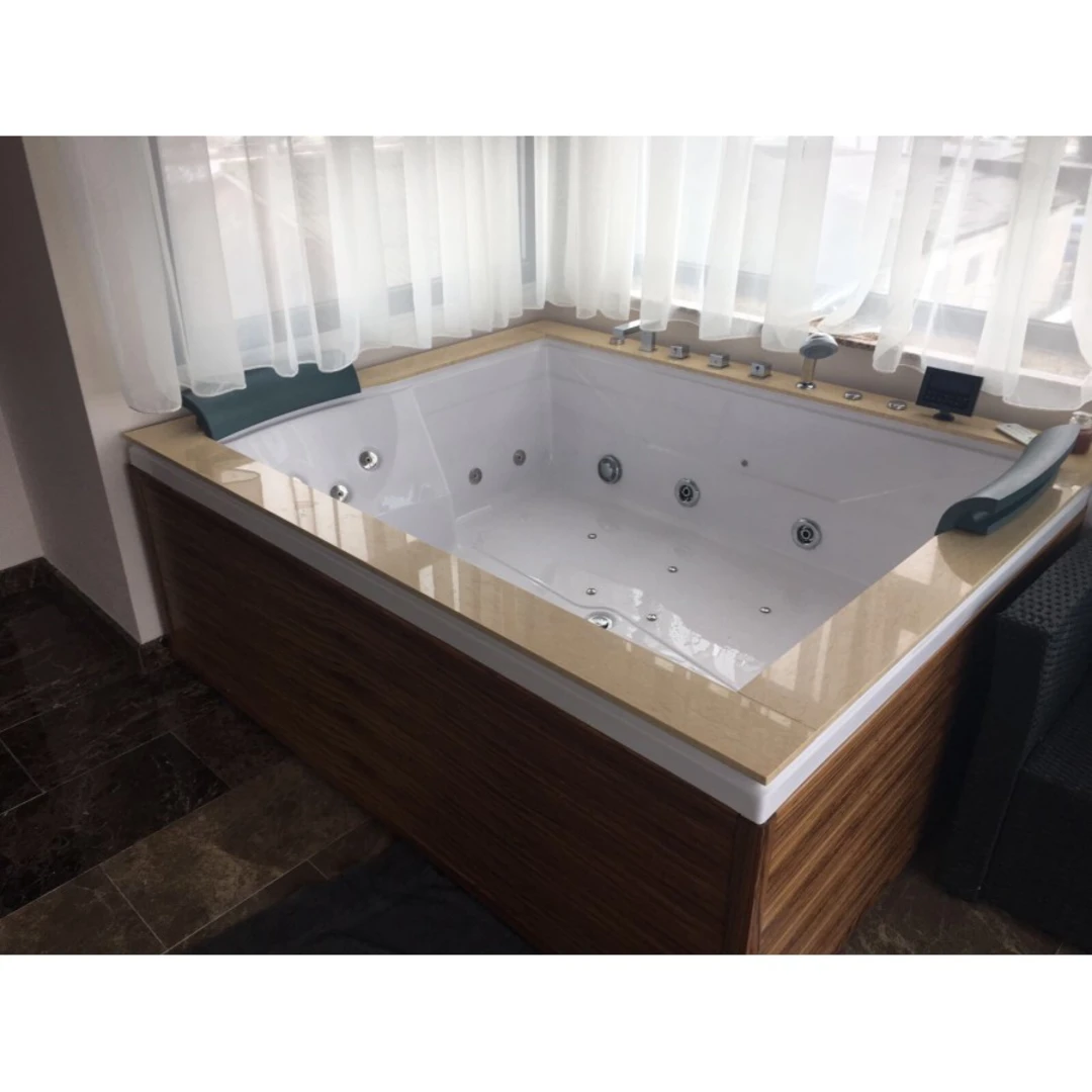 Modelul SPA-0502 este o cadă cu hidromasaj pentru două persoane, proiectată pentru relaxare completă prin combinarea hidromasajului, aeromasajului și cromoterapiei. Varianta cu panouri din lemn „Zebrano” și perimetru decorativ din marmură „Primary Yellow” oferă un aspect premium, natural, potrivit pentru băi elegante și spații wellness rezidențiale.