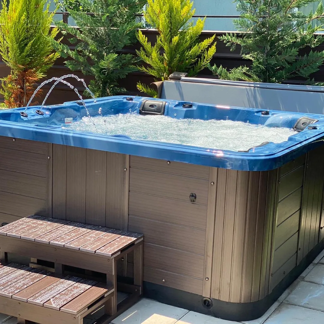 Modelul SPA-319A este un spa de exterior pentru 6 persoane (1 loc lounge și 5 locuri în șezut), conceput pentru utilizare în orice sezon, cu accent pe masaj eficient, control precis al temperaturii și funcționare fiabilă. Bazinul acrilic Aristech SUA (acril sanitar antibacterian) este configurat în culoarea albastru marin (cod 04), cu mască din PVC maro închis, trepte din PVC maro închis, capac termoizolant maro închis, cascadă romană (2 buc.) și accesorii Premium (toate jeturile apă/aer componente de culoare gri).