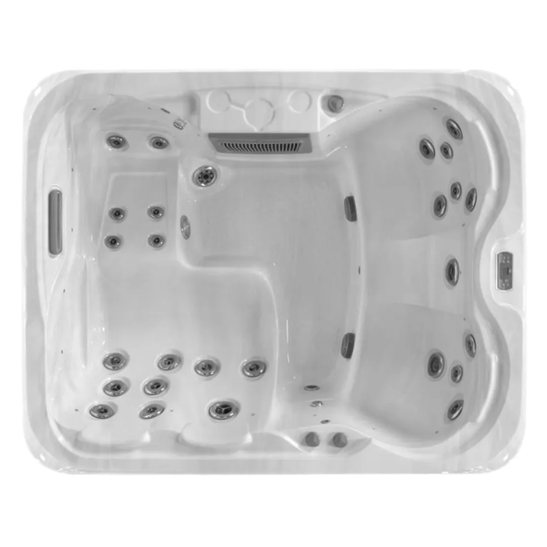 Modelul SPA-355 este un spa de exterior echipat cu sistem integral electric și electronic Gecko Canada (Electric Box YJ3 și tastatură in.k300), conceput pentru masaj hidroterapeutic eficient și funcționare fiabilă, cu accent pe izolație termică superioară. Bazinul acrilic alb perlat este completat de mască din compozit PVC gri, trepte gri, capac termoizolant gri și tavă de etanșare din fibră de sticlă, toate accesoriile și jeturile fiind în finisaj gri high standard. Modelul este prevăzut cu izolație R10, de patru ori mai groasă decât izolația standard, aplicată atât pe bazin, cât și pe mască și tavă, pentru reducerea pierderilor de căldură și costuri mai mici de exploatare.