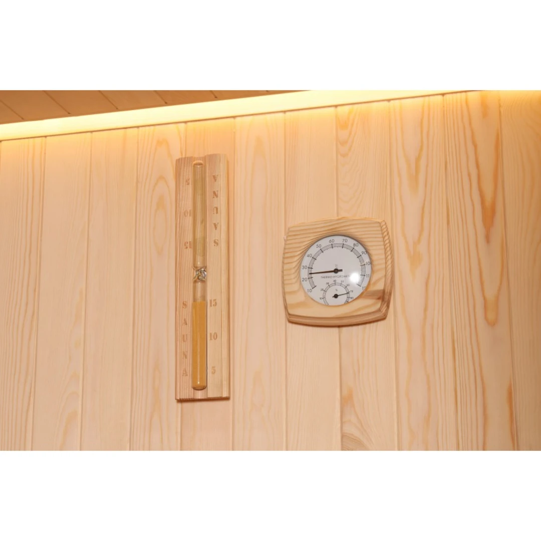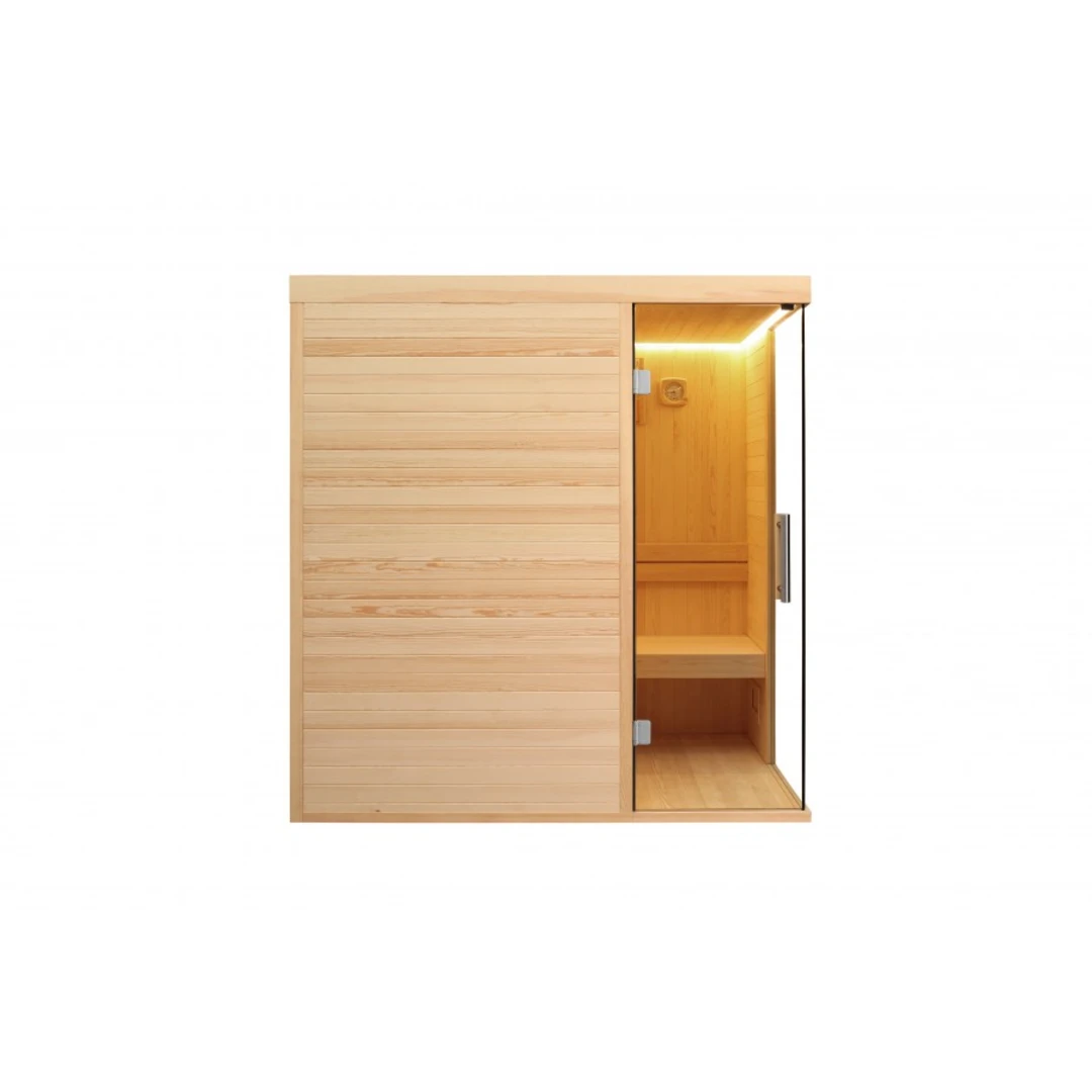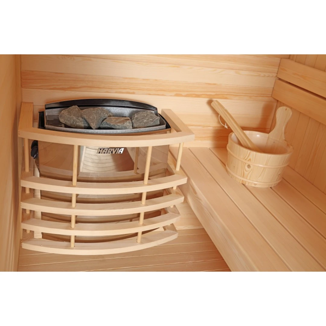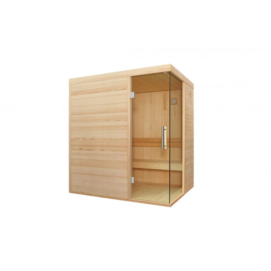 Modelul Saună tradițională WS-CC04A este o cabină de saună compactă din pin alb, destinată utilizării rezidențiale. Include panou de control cu funcție Bluetooth, funcțiile standard ale unei saune finlandeze și sistem de iluminare cu bandă LED. Este echipată cu încălzitor Harvia de 4.5 kW și funcționează la 220V.
